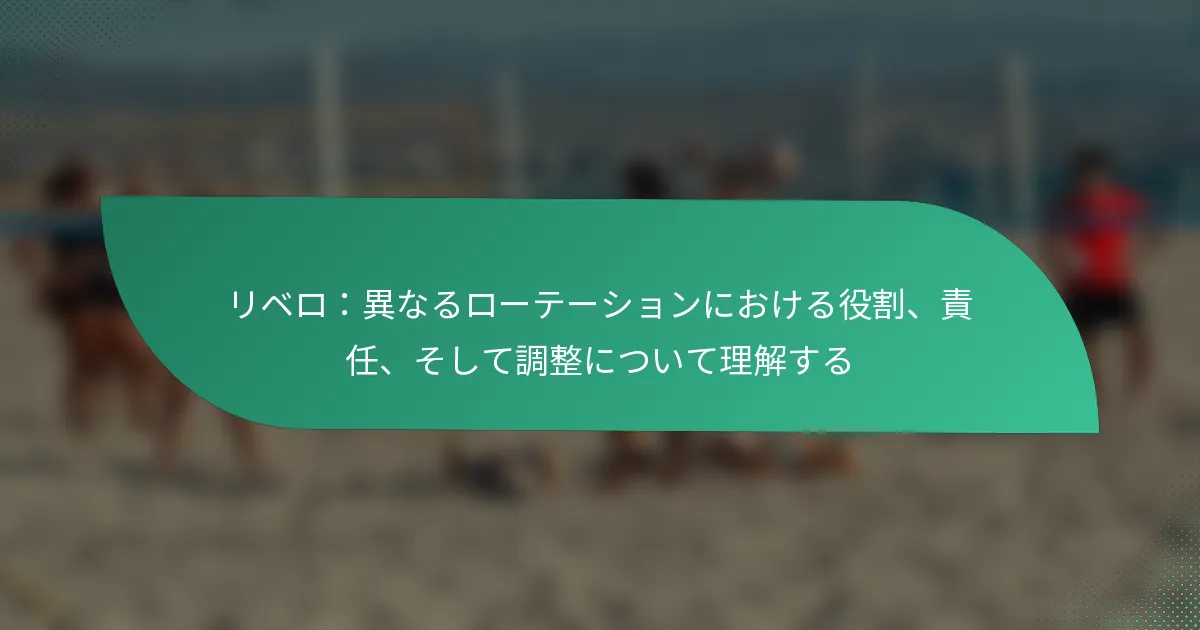リベロはバレーボールのローテーションにおいて重要な役割を果たし、主に守備とサーブレセプションに焦点を当てています。彼らの責任は、5-1や6-2のフォーメーションなど、異なるフォーメーションによって異なり、チームのダイナミクスやポジショニング戦略に影響を与えます。