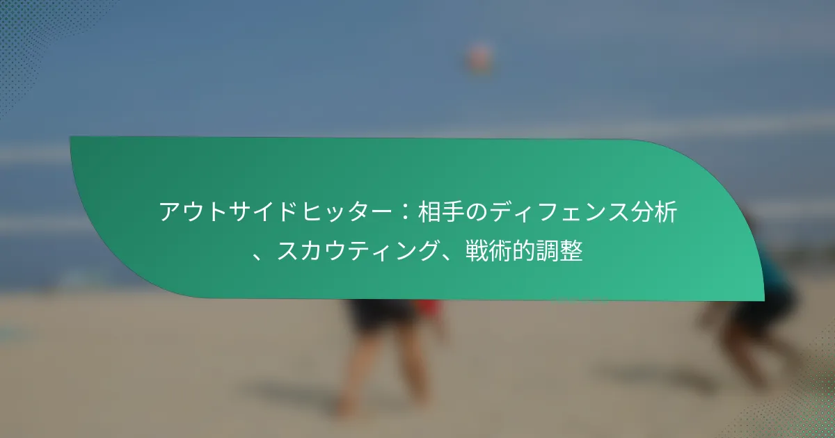 試合前に、アウトサイドヒッターは相手のビデオ映像を研究することに集中すべきです。これにより、守備フォーメーションや選手の傾向を観察し、攻撃計画において重要な要素を把握することができます。重要な選手や彼らの守備戦略を特定することは、ターゲットを絞ったアプローチを形成するのに役立ちます。