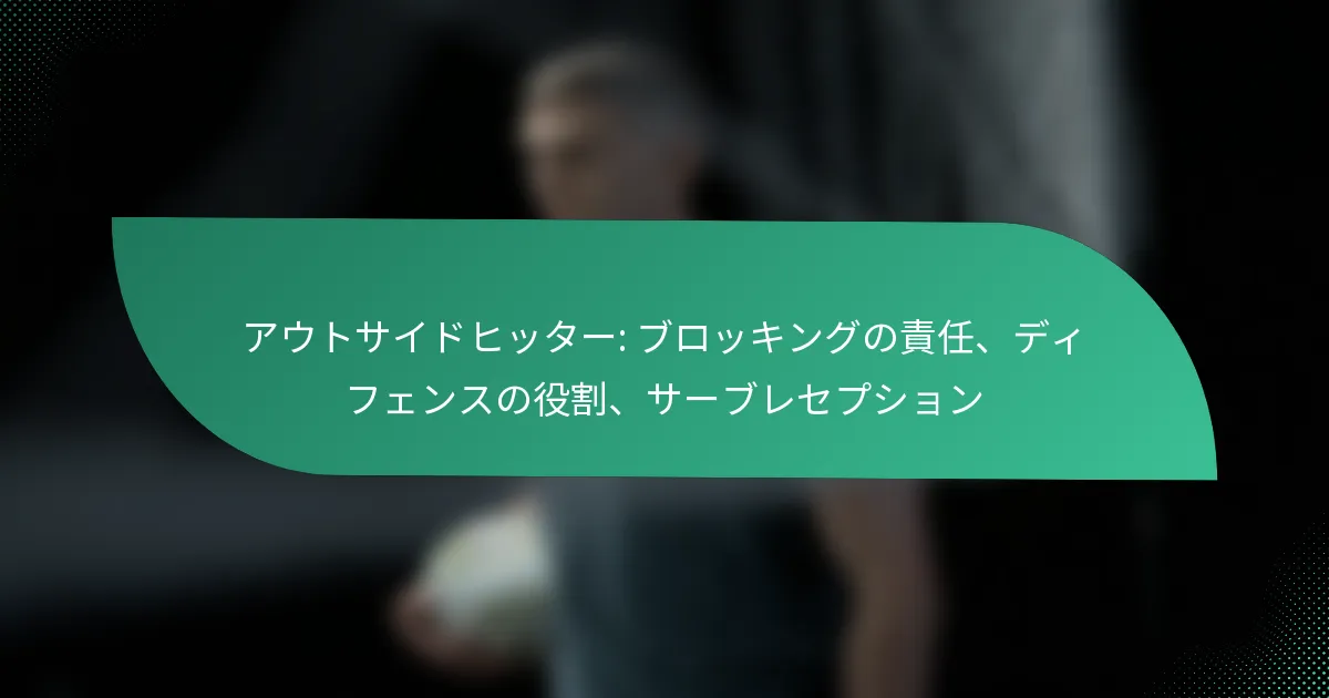 アウトサイドヒッターは、効果的にポジショニングし、バックローの選手をサポートし、戦略をコミュニケーションすることで、ディフェンスにおいて重要な役割を果たします。相手の動きを予測し、攻撃からディフェンスに素早く移行する能力は、チーム全体のパフォーマンスを向上させます。
