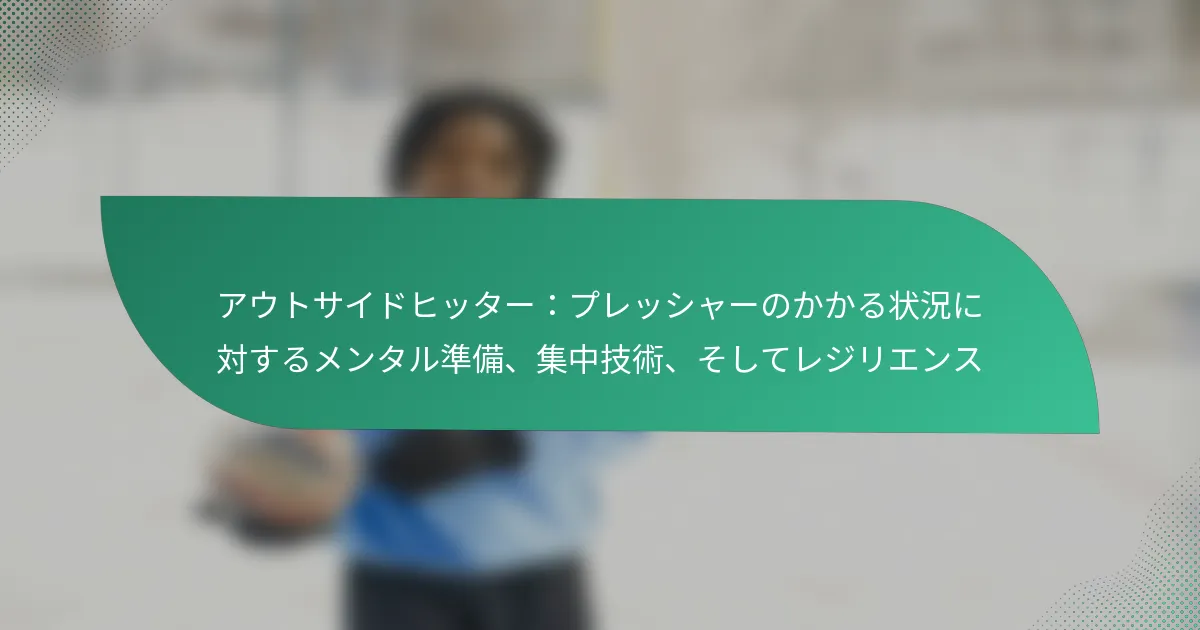 外部ヒッターは、成功したアスリートが使用するメンタル準備技術を採用することで、プレッシャーの中でのパフォーマンスを向上させることができます。これらの技術は、競技中の高リスクの瞬間における回復力、集中力、効果的な対処戦略に焦点を当てています。