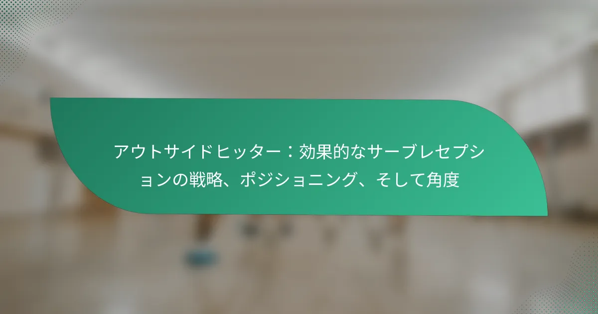 アウトサイドヒッターは、サーブレセプションにおいて重要な役割を果たし、コミュニケーション、戦略的なポジショニング、敏捷なフットワークの組み合わせが求められます。サーブの軌道を予測し、相手のフォーメーションに基づいてスタンスを調整することで、チームのパフォーマンスを大幅に向上させることができます。さらに、さまざまな攻撃角度をマスターすることで、アウトサイドヒッターは守備の弱点を突き、試合中の攻撃プレーを最適化することができます。
