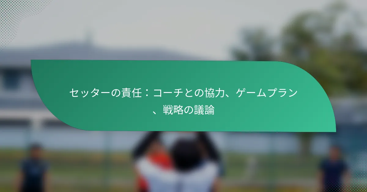 セッターは、効果的なゲームプランと戦略を開発するためにコーチと協力する上で重要な役割を果たします。明確なコミュニケーションと戦略的議論への積極的な参加に焦点を当てることで、セッターはチームのパフォーマンスを向上させ、変化するゲーム状況に適応できます。