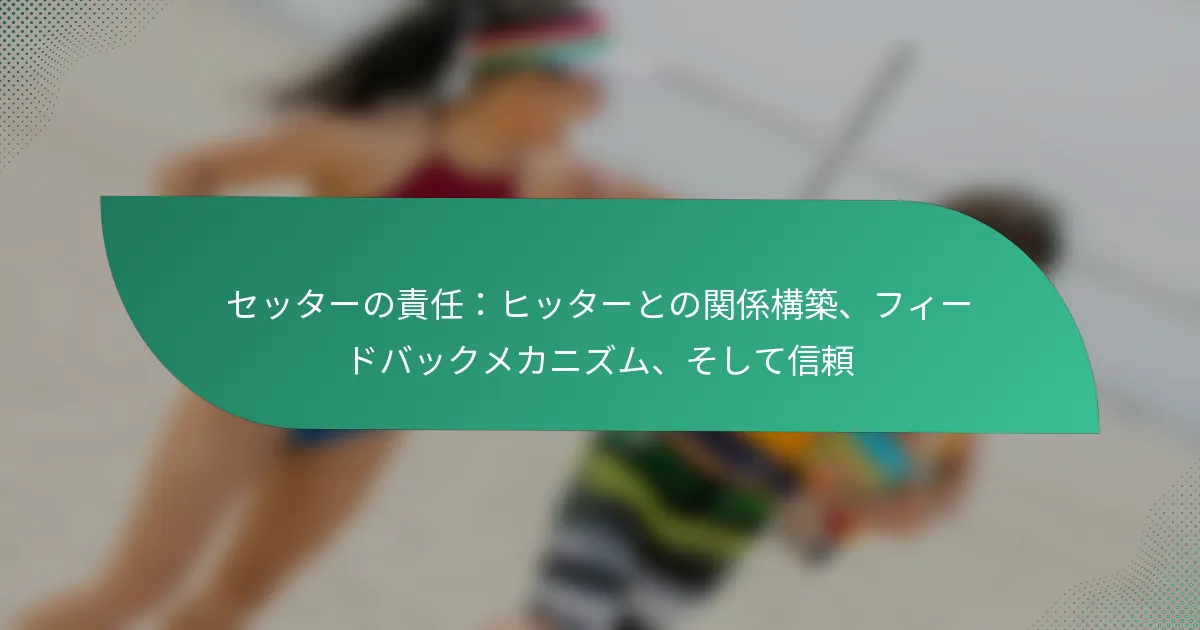 バレーボールにおけるセッターの役割は、プレーを組織し、ゲームのテンポを管理するために重要ですが、単なる技術的スキルを超えています。効果的なコミュニケーションと信頼を通じてヒッターとの強い結びつきを確立することは、チームのパフォーマンスを向上させるために不可欠です。フィードバックメカニズムを活用することで、セッターは継続的な改善を促進し、一体感のあるゲーム体験を確保できます。