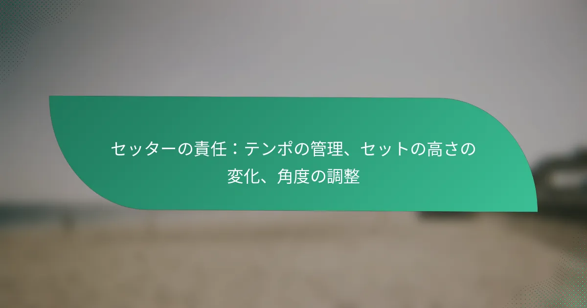 セッターがテンポを管理する能力は、ゲームのペースをコントロールするための基本です。ボールのセット速度を変えることで、相手のディフェンスを崩し、得点機会を生み出すことができます。たとえば、迅速なセットはディフェンダーを驚かせることができ、遅い、より意図的なセットはより良いポジショニングとタイミングを可能にします。