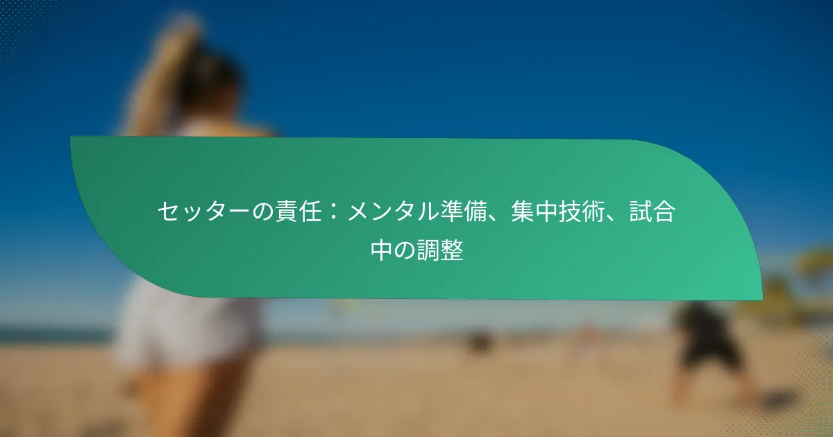 メンタルの準備は、セッターが試合中に最高のパフォーマンスを発揮するために重要です。これは、集中力を高め、自信を築き、不安を軽減する技術を含み、セッターがプレッシャーの中で戦略を効果的に実行できるようにします。