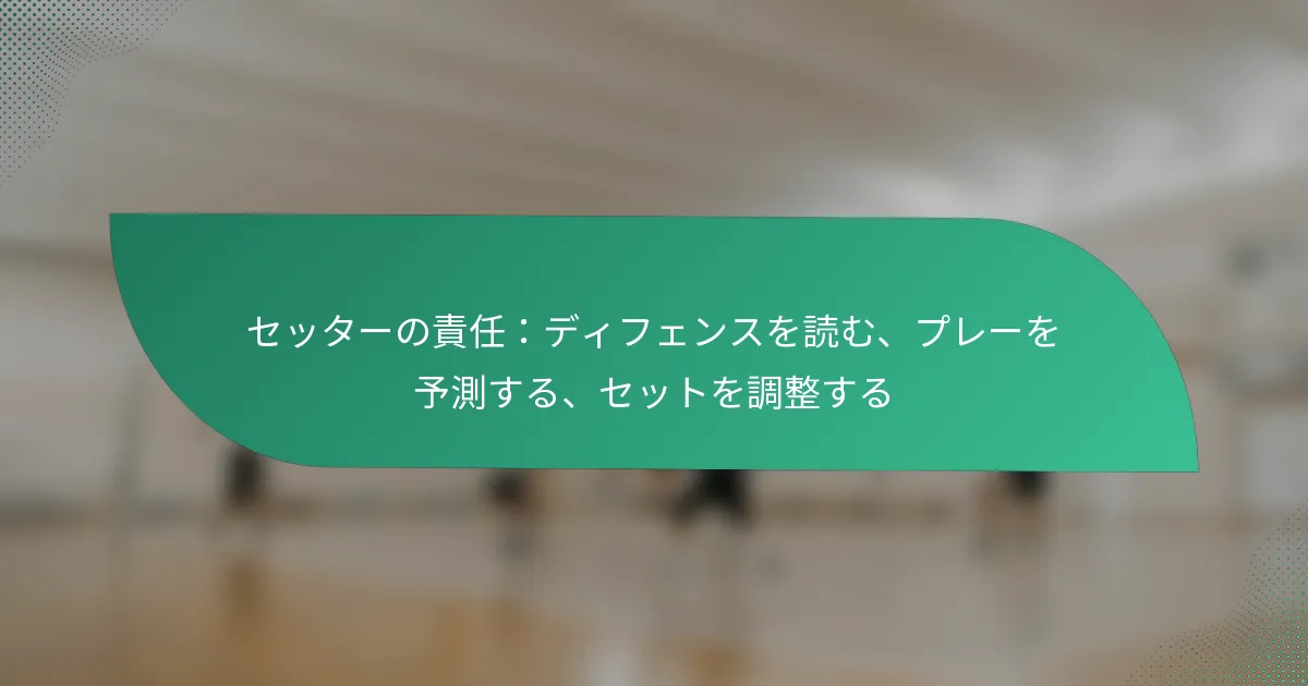 セッターは、ディフェンスを読み取り、プレーを予測し、チームメイトと効果的にコミュニケーションを取ることで、試合中にセットを調整します。このプロセスには、ディフェンシブフォーメーションを認識し、オフェンシブ戦略を最適化するために迅速な意思決定を行うことが含まれます。