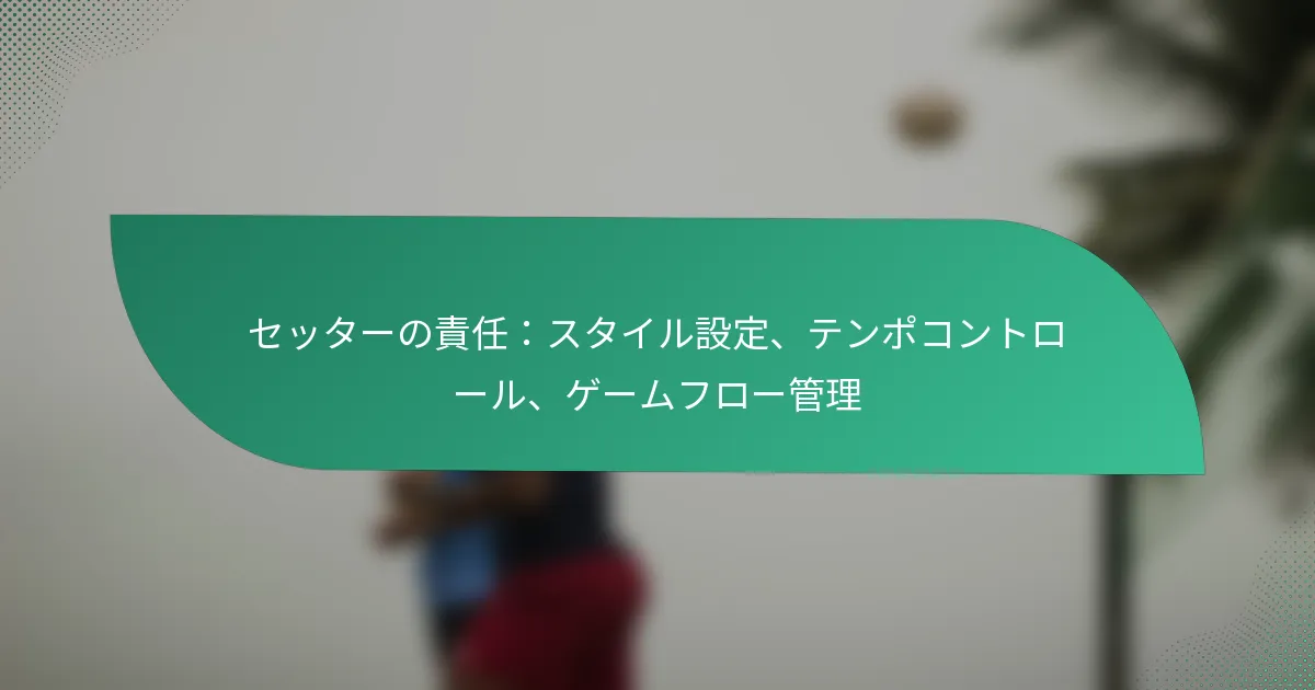 セッターは、テンポとプレーのリズムをコントロールすることでゲームの流れを管理する重要な役割を果たします。彼らは、得点機会を最大化し、試合のダイナミクスに適応しながら、ボールがセットされる方法に影響を与える迅速な意思決定を行います。