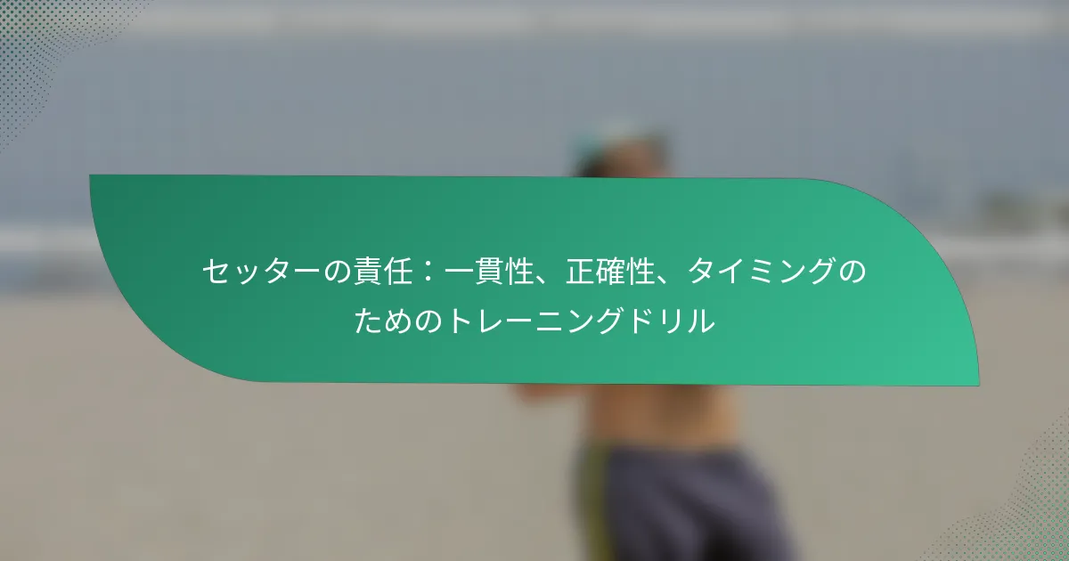 セッターの正確性に焦点を当てたドリルは、一貫性のある正確なパス技術を開発するために不可欠です。これらのドリルは、選手がスキルを磨き、試合中に正確なセットを提供できるようにします。