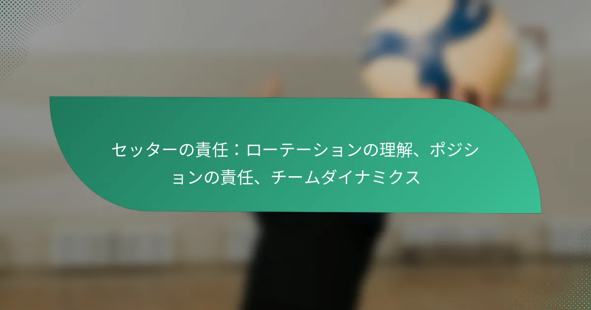 ローテーションはセッターの責任に大きな影響を与え、ポジショニング、タイミング、チームメイトとの相互作用を決定します。これらのダイナミクスを理解することは、効果的なプレーとチームの成功にとって重要です。